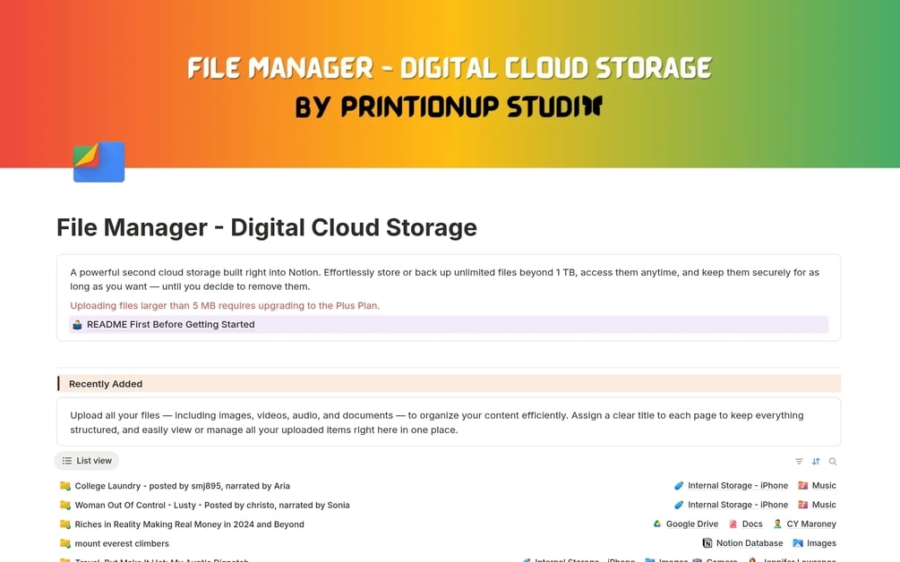 Notion File Manager - Digital Cloud Storage Template